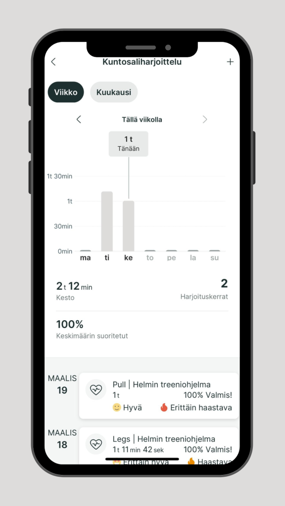 Viikoittaisen raportoinnin avulla seuraamme kehitystäsi ja lisäksi voit olla minuun yhteydessä chatissä.